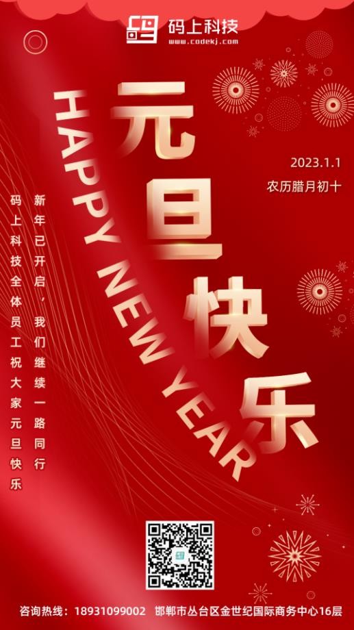 新的一年開(kāi)啟新的期望,新的期望承載新的夢(mèng)想,碼上科技希望與各位繼續保持友好合作關(guān)系,用心前行,筑夢(mèng)遠航,攜手共創(chuàng ),輝煌佳宗,愿我們今年比去年更輝煌,事業(yè)更順利路越走越好!2023新的一年,我們一起共輝煌!