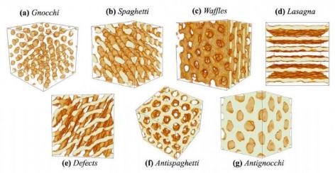 核通心粉就是其中一種物質(zhì)。當恒星中致密的中子被擠壓并推向不同方向時(shí),則會(huì )呈現出一系列的形狀,科學(xué)家們將它們跟不同種類(lèi)的面條作對比。其中形成近乎圓形氣泡的被比作意大利團子,形成長(cháng)、細棒子的則被叫做意大利細面條。