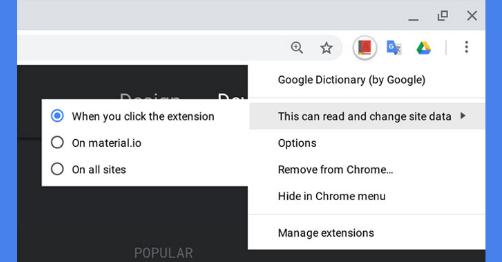 1. Google 允許用戶(hù)對擴展程序進(jìn)行限制,使其僅限于某些特定網(wǎng)站。此外用戶(hù)也可以設置要求擴展每次運行必須要征詢(xún)用戶(hù)的許可。