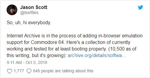互聯(lián)網(wǎng)檔案館是個(gè)懷舊的好去處,網(wǎng)站總監 Mark Graham 表示,網(wǎng)站收錄了不斷增長(cháng)的內容,其中包括超過(guò)四百萬(wàn)本書(shū)籍和 3390 億個(gè)網(wǎng)頁(yè)。不過(guò)近日,該網(wǎng)站又推出了 Commodore 64 模擬器,理論上里面的每個(gè)軟件(包括幾款經(jīng)典游戲)都經(jīng)過(guò)了廣泛的測試,可以像往年一樣正常工作。