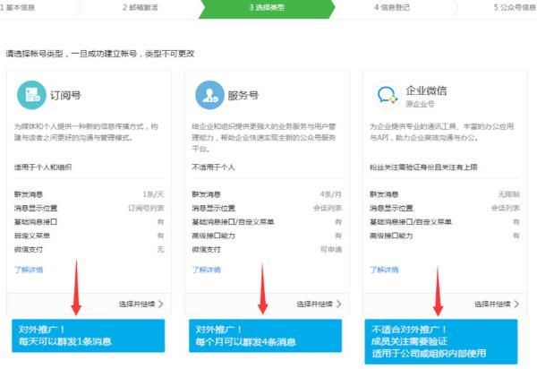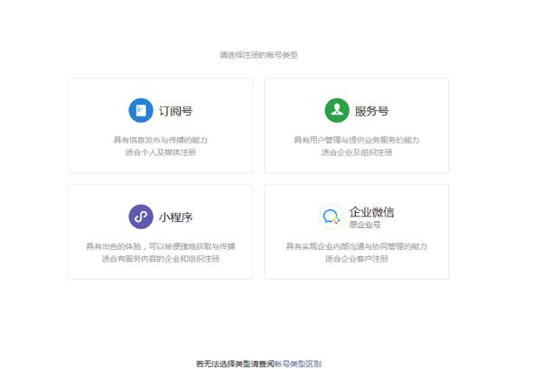 3、 了解訂閱號、服務(wù)號和企業(yè)微信的區別后,選擇想要的帳號類(lèi)型;