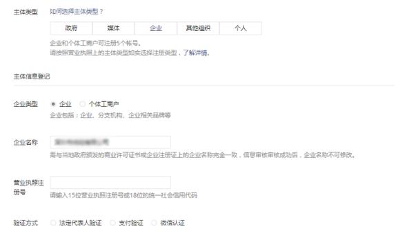 選擇企業(yè)之后,填寫(xiě)企業(yè)名稱(chēng)、營(yíng)業(yè)執照注冊號,選擇注冊方式;