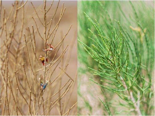 2017 年春天,一歲的梭梭寶寶綠了,眼見(jiàn)著(zhù)干枯的枝條,變成了綠油油、肉乎乎的小芽……