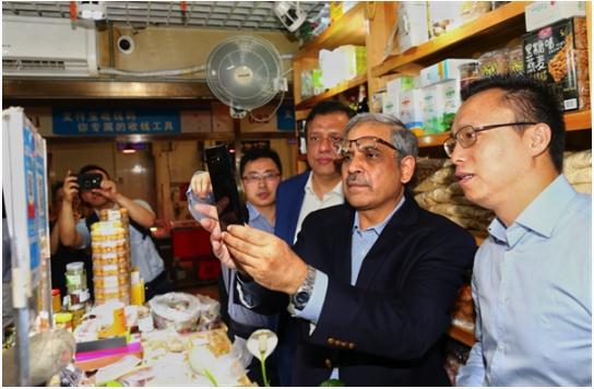 ↑↑↑巴基斯坦央行行長(cháng)借用螞蟻金服掌門(mén)人井賢棟的支付寶嘗試掃碼買(mǎi)一包葡萄干