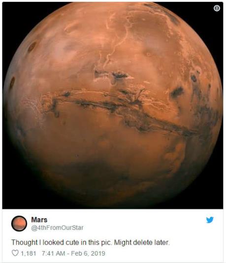 “火星”賬戶(hù)發(fā)推文稱(chēng),“你什么時(shí)候過(guò)來(lái)寶貝?”