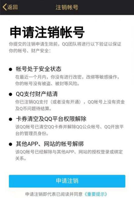3 月 13 日 13 日起,QQ 號碼可注銷(xiāo)。Android 版手機 QQ 今日更新至 7.9.9 版本,此前處于內測的注銷(xiāo)功能正式上線(xiàn),用戶(hù)可進(jìn)入“設置”選擇“注銷(xiāo)賬號”。不過(guò)為避免賬號被惡意注銷(xiāo),只有滿(mǎn)足一定條件才能完成注銷(xiāo):綁定設備安全鎖,確保密保手機生效滿(mǎn)一個(gè)月,注銷(xiāo) QQ 支付,并解除與其他 APP 或網(wǎng)站的授權和綁定關(guān)系。騰訊提示,注銷(xiāo) QQ 號是不可恢復的操作,所有資料都將被清空。你要注銷(xiāo)自己的 QQ 嗎?