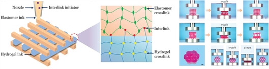 據介紹,此前美國麻省理工大學(xué)教授趙選賀課題組率先通過(guò)表面處理的方式,實(shí)現了水凝膠/彈性體以共價(jià)鍵形式粘接,但表面處理的方式不宜用于 3D 打印技術(shù)。