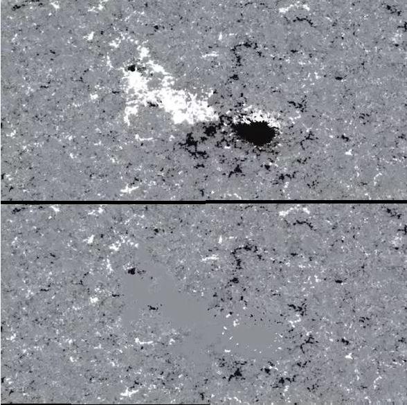 太陽(yáng)上經(jīng)常存在兩種磁活動(dòng)。一類(lèi)是黑子(群),屬于大尺度的磁活動(dòng),其尺度甚至可以達到 20 萬(wàn)千米,磁場(chǎng)強度可達數千高斯,一般壽命為數十天(短則 1 天,長(cháng)則數月)。另一類(lèi)是叫做“小尺度磁場(chǎng)”的磁活動(dòng)。小尺度磁場(chǎng)遍布全日面,尺度一般小于 2 萬(wàn)公里、磁場(chǎng)強度一般小于 300 高斯,壽命一般不超過(guò) 1 天(短則數小時(shí),長(cháng)可超過(guò) 1 天)。小尺度磁場(chǎng)主要由太陽(yáng)內部浮出,大尺度磁場(chǎng)分裂瓦解,可以成為小尺度磁場(chǎng)。