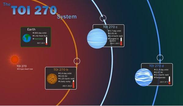 在審查數據后,天文學(xué)家得出的結論是,三顆系外行星正在圍繞附近的恒星 TOI 270 進(jìn)行軌道運動(dòng),因為它是 TESS 自開(kāi)始科學(xué)運作以來(lái)已經(jīng)確定的第 270 個(gè)感興趣的天體。
