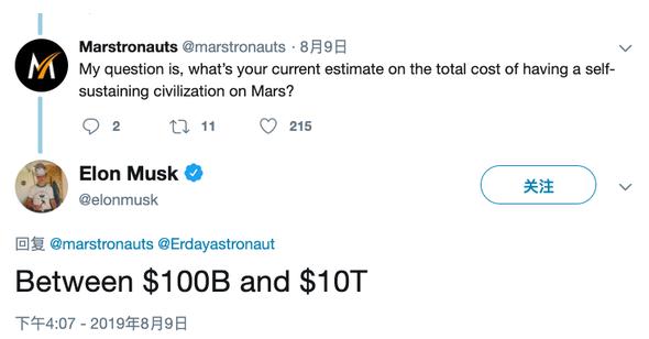 在遠離地球數億英里之外的另一個(gè)星球上建造城市,這將會(huì )是一個(gè)極其昂貴的項目。馬斯克在其Twitter上表示,他預計在火星上建造城市的成本將會(huì )在“1000億到10萬(wàn)億美元之間。”