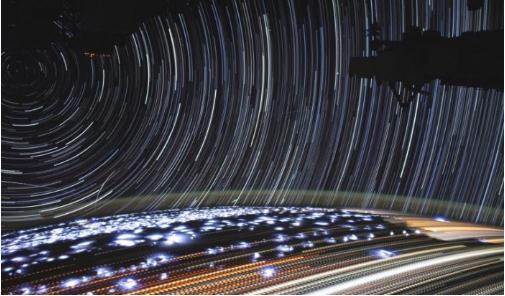 通常,一張顯示如此多的星體活動(dòng)的延時(shí)攝影圖像需要花一整晚的時(shí)間來(lái)捕捉,但是由于國際空間站繞地球運行的速度,它只用了 11 分鐘。這是空間站經(jīng)過(guò)非洲大片地區時(shí)捕獲的約 400 張單獨照片的結果。