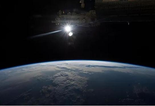 國際空間站上看到的太陽(yáng)照耀下的地球。圖片來(lái)源 NASA