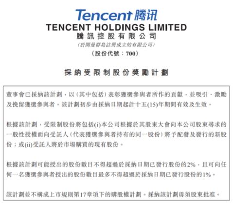 此前,騰訊曾分別于2007年、2013年提出過(guò)員工股份計劃,分別擬授出不超過(guò)當時(shí)總股份的2%、3%。