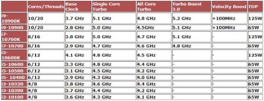 OC3D 網(wǎng)站也報道了這件事,實(shí)際上他們報道的內容跟我們之前報道的是一樣了,單說(shuō)內容的話(huà)不需要再重復一遍了,他們自己做的一個(gè)表格也能很清晰地看出十代酷睿處理器從高端的酷睿 i9 到低端的酷睿 i3 的變化。