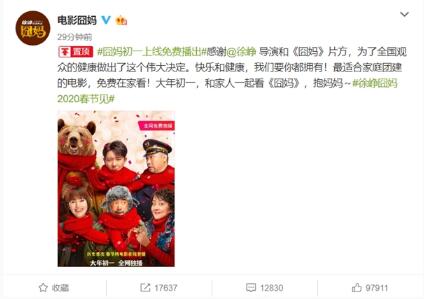 線(xiàn)上首播 電影《囧媽》將在大年初一免費播出