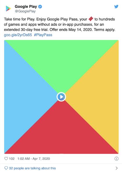 此前 Google Play Pass 可以免費試用 10 天時(shí)間,月費 4.99 美元,不過(guò)可能考慮到近期現狀,Google Play 官推在 4 月 7 日宣布,Google Play Pass 免費試用時(shí)間延長(cháng)到 30 天,最長(cháng)可以玩到 5 月 14 日!