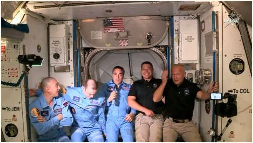 騰訊科技訊(喬輝)北京時(shí)間 6 月 1 日凌晨 1 點(diǎn) 23 分左右,搭乘 SpaceX 龍飛船的兩位美國宇航員先后進(jìn)入國際空間站,與等待在那里的宇航員會(huì )面。