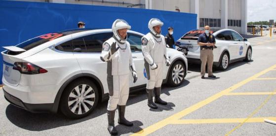 數以百萬(wàn)計的人觀(guān)看了此次發(fā)射任務(wù)的現場(chǎng)直播,他們看到宇航員乘坐特斯拉 Model X 前往發(fā)射臺。