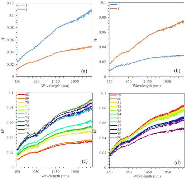 如上圖,2μm后光譜抬升隨著(zhù)太陽(yáng)升高而逐漸加強,隨著(zhù)太陽(yáng)下沉而逐漸降低。