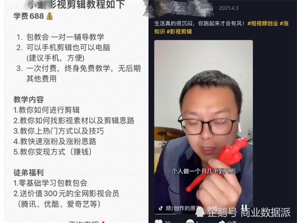 什么是“收徒”?這是指那些已經(jīng)有一定視頻剪輯成績(jì)和粉絲量的博主,通過(guò)抖音個(gè)人簡(jiǎn)介、直播等形式,面向粉絲群體收徒,以有償傳授視頻剪輯、賬號運作、粉絲管理甚至逃避審查的技巧的方式進(jìn)行小范圍內的流量變現。有些博主甚至根據不同的需求制定了不同的套餐,價(jià)格從99到上千元不等,并借此大賺一筆。