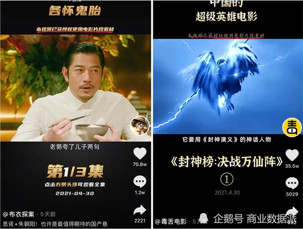 不過(guò),隨著(zhù)事件的發(fā)酵,《商業(yè)數據派》已經(jīng)注意到一些變化,抖音上的影視頭部博主,千萬(wàn)粉絲大號“毒舌電影”和“布衣探案”均在近期發(fā)布的作品中,標明“本視頻已獲授權使用電影片段素材”。