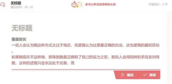 以“揠苗助長(cháng)”開(kāi)頭續寫(xiě),“一些人會(huì )認為我這種方式太過(guò)于殘忍,如果我現在不這樣做,等我擁有實(shí)力后,那些人也會(huì )用同樣的手段對待我……”