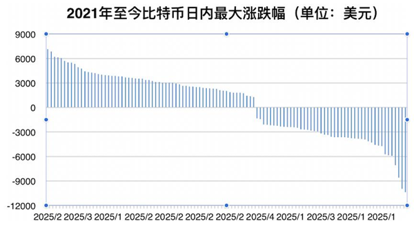 即便自2021年1月以來(lái)比特幣已經(jīng)進(jìn)入牛市,累計上漲了近2倍,但也經(jīng)常發(fā)生暴跌,其中日最大跌幅超過(guò)5000美元的至少有7天,在2月22日和23日連續兩天的日內最大跌幅都超過(guò)了10000美元。本次比特幣暴跌的最大幅度也只有9000美元。