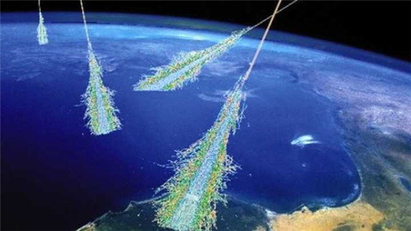 這樣,一顆高能粒子,就能產(chǎn)生N多次級粒子,這些次級粒子像陣雨一樣灑向地面,灑向探測器,專(zhuān)業(yè)上稱(chēng)為“空氣簇射”。
