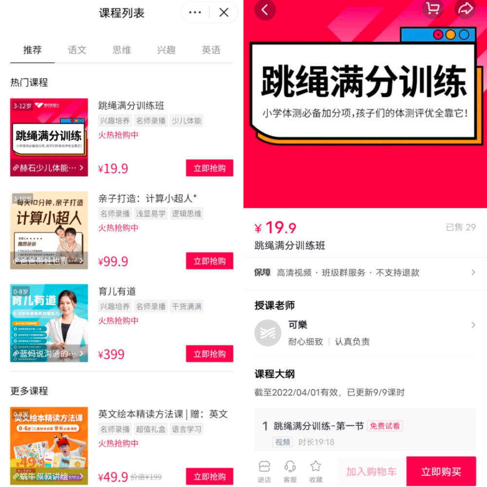 授課老師都參與了字節推出的學(xué)浪計劃,授課形式則以錄播的方式呈現,家長(cháng)可以免費試看一節。