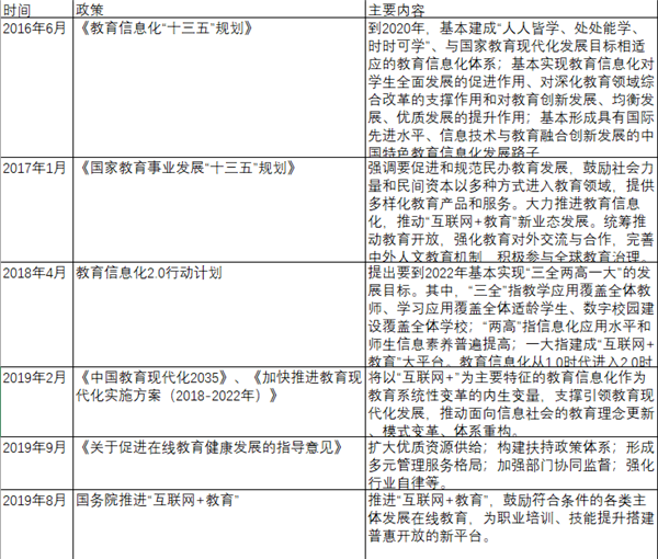 根據光子星球整理,早在2012年《教育信息化十年發(fā)展規劃(2011-2020年)》中就提出,到2020年,形成與國家教育現代化發(fā)展目標相適應的教育信息化體系,基本建成人人可享有優(yōu)質(zhì)教育資源的信息化學(xué)習環(huán)境等目標。