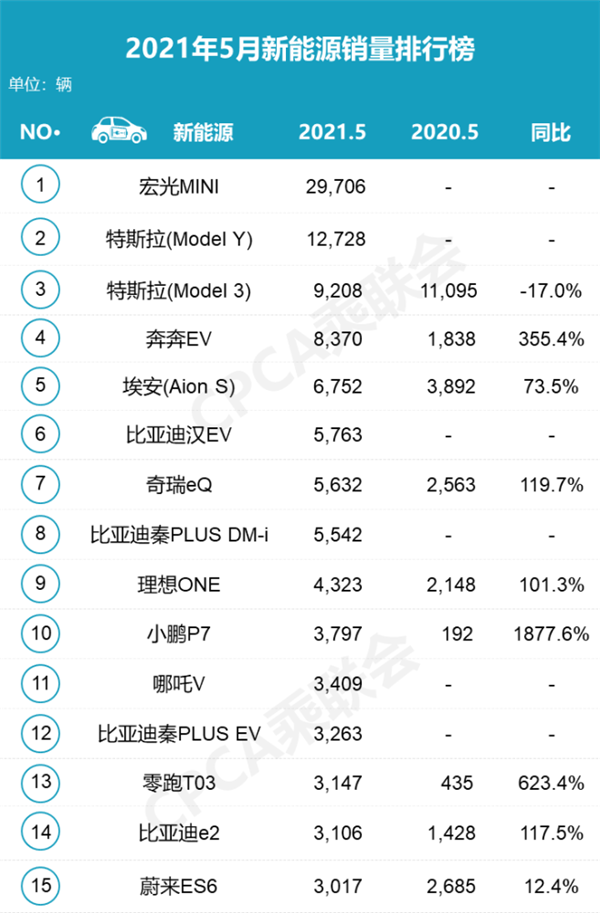 6月8日,乘聯(lián)會(huì )公布了5月國內汽車(chē)銷(xiāo)量數據。意料之外的是,被負面新聞纏繞的特斯拉中國,并沒(méi)有出現銷(xiāo)量大跌的情況,5月仍售出了33,463輛新車(chē),較4月份的25,845輛增長(cháng)了29%。而意料之中的是,“五菱神車(chē)”宏光MINI EV以29,706輛的成績(jì),繼續占據榜首。