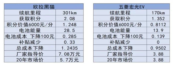 以長(cháng)城汽車(chē)旗下歐拉品牌的歐拉黑貓為例,2021年,一輛歐拉黑貓可獲取新能源正積分2.08分,每分價(jià)格計為6000元,電池成本可下降100元/千瓦時(shí),磷酸鐵鋰成本的降幅更大,雖然補貼減少了,但總成本仍可降低1.24萬(wàn)元。也就是說(shuō),電池成本的降低足以抵消補貼減少對企業(yè)造車(chē)成本的不利影響。
