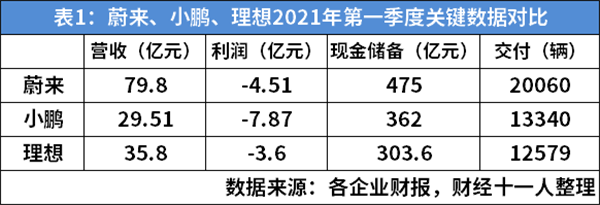 其實(shí)現在蔚小理三家的財務(wù)狀況都比較理想,2021年第一季度,三家雖然都在虧損,但現金儲備都在300億元以上(見(jiàn)表1),這種規模的現金儲備可以說(shuō)底氣十足了。但即便如此,融資腳步依然緊鑼密鼓,對于資金,造車(chē)新勢力永遠饑渴。