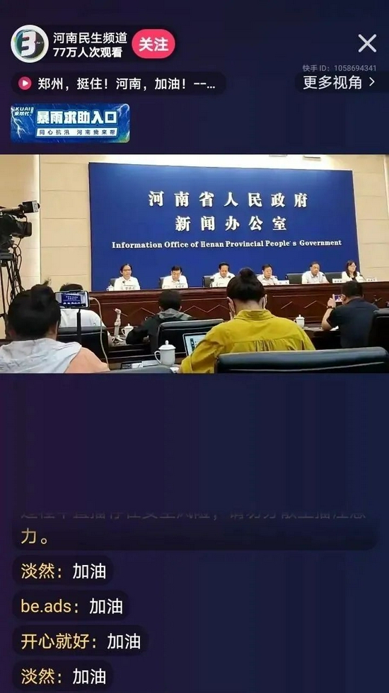 另一邊,快手也在災情初期上線(xiàn)了求助通道,以問(wèn)卷形式收集求助信息。除了搜索河南暴雨相關(guān)信息會(huì )出現的“關(guān)注河南暴雨”專(zhuān)題欄目,快手還在央視網(wǎng)等多個(gè)官方媒體直播間的醒目位置掛上了“暴雨求助入口”直達鏈接,方便有需要的民眾及時(shí)同步求助信息。