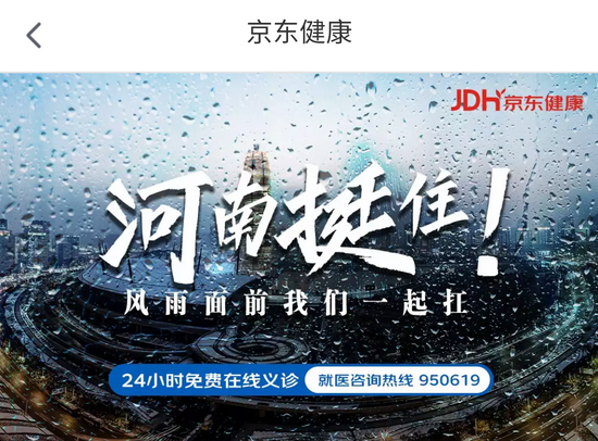 與此同時(shí),位于鄭州的京東之家、京東專(zhuān)賣(mài)店等線(xiàn)下門(mén)店,也已為當地市民提供緊急避險場(chǎng)所,幫助當地群眾渡過(guò)汛情難關(guān)。此外京東健康緊急為河南地區用戶(hù)開(kāi)啟免費在線(xiàn)問(wèn)診服務(wù)專(zhuān)區,并開(kāi)通24小時(shí)就醫咨詢(xún)服務(wù)專(zhuān)線(xiàn),盡可能滿(mǎn)足當地受災群眾緊急就醫需求。