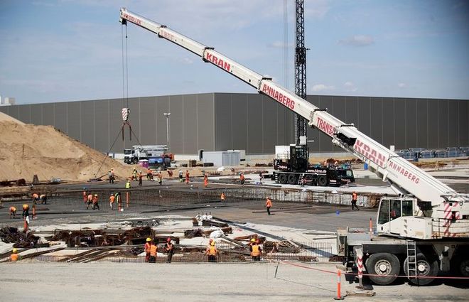 圖示:8 月 12 日,工廠(chǎng)在特斯拉柏林超級工廠(chǎng)廠(chǎng)區施工