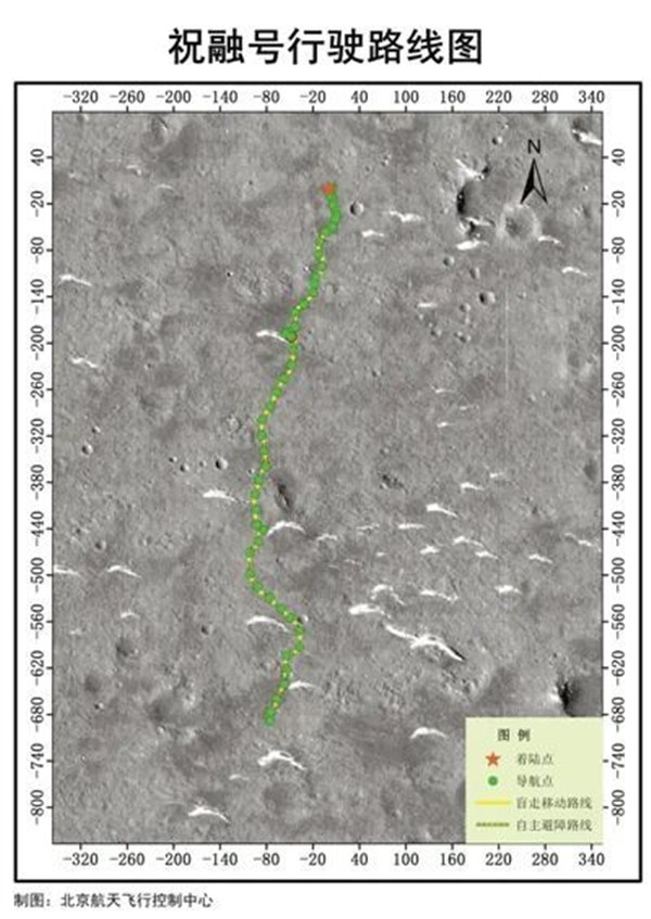 祝融號行駛路線(xiàn)圖(截止到8月15日)。北京航天飛行控制中心供圖