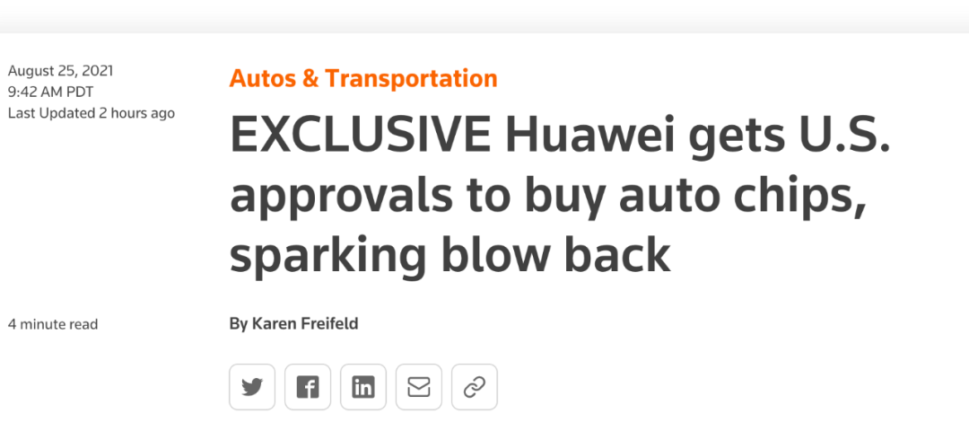 據了解許可證批準程序的一位人士向路透社表示,此次美國已授予供應商許可證,供應商可向華為出售用于視頻屏幕和傳感器等汽車(chē)零部件的芯片。此外,此次同意向華為出售的芯片許可證中,也可能包括具有 5G 功能組件車(chē)輛中的芯片。