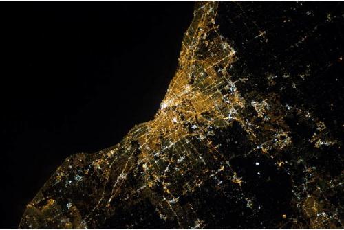 ▲ 240 英里高度的克利夫蘭夜景. 圖片來(lái)自:NASA