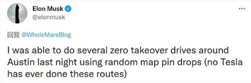 周二,馬斯克發(fā)了一條推特,說(shuō)他“昨日晚間”在德州奧斯丁附近駕駛特斯拉,使用 FSD Beta 10.5 完全自動(dòng)駕駛功能,并且隨機在地圖上選了幾條路線(xiàn)。在 FSD 功能的操作下,車(chē)輛行駛穩定,全程無(wú)需人工接管。馬斯克還強調,這些路線(xiàn)沒(méi)有高精度地圖支持,甚至連特斯拉車(chē)輛都是第一次行駛。