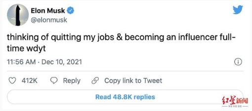 12 月 9 日夜間,馬斯克更是在推特上征求網(wǎng)友的意見(jiàn)稱(chēng):“正在考慮辭去所有的工作,全身心地做一名網(wǎng)紅,你怎么想?”
