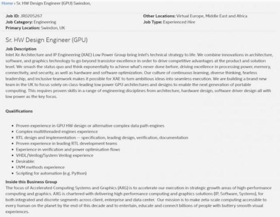 英特爾在該公司的筆記本處理器中采用了 Xe-LP 架構。然而,為自己的設計提供新的節能 GPU 架構的概念也存在這一可能性,這些設計正在計劃在五年或更長(cháng)時(shí)間內實(shí)施,尋求有經(jīng)驗的員工對他們是有利的。