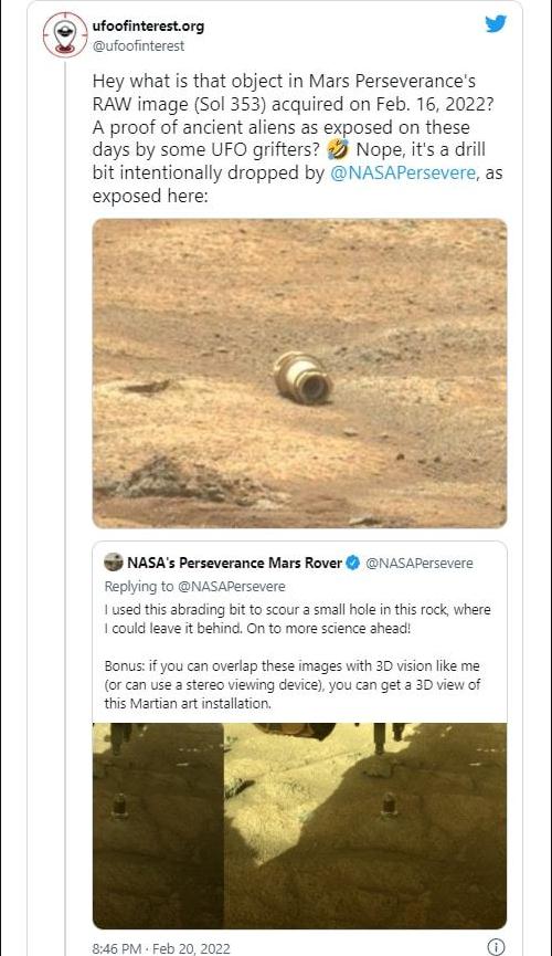 UFO of Interest 本周早些時(shí)候強調了最近的漫游車(chē)圖片,并追蹤了該物體背后的故事。