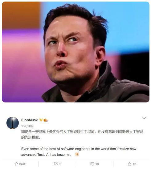 特斯拉 CEO 馬斯克對自家的人工智能技術(shù)非常自信,剛剛他在微博發(fā)文稱(chēng),“即便是一些世界上最優(yōu)秀的人工智能軟件工程師,也沒(méi)有意識到特斯拉人工智能的先進(jìn)程度。”