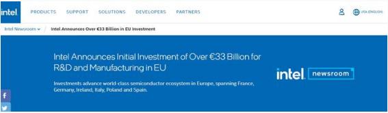 英特爾還承諾,在法國建立一個(gè)新的研發(fā)和設計中心,并在愛(ài)爾蘭、意大利、波蘭和西班牙投資于研發(fā)、制造和代工服務(wù)。