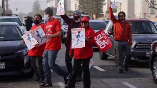 周三早上,大約 50 名配送、拼車(chē)司機聚集在洛杉磯附近亞馬遜倉庫外,他們要求亞馬遜為油價(jià)上漲提供補貼。