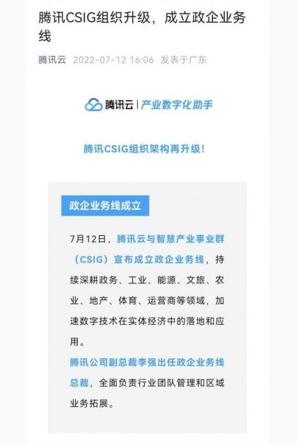 騰訊云與CSIG成立政企業(yè)務(wù)線(xiàn) 加速數字技術(shù)在實(shí)體經(jīng)濟中的落地和應用 11:34:49