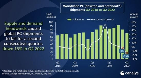 全球 PC 市場(chǎng)曾連續七個(gè)季度高歌猛進(jìn),保持正增長(cháng),但到了 2022 年,這一趨勢戛然而止。
