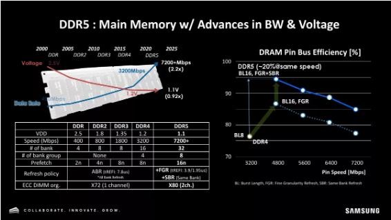 為了支持英特爾和 AMD 下一代平臺,三星準備推出一系列全新的 DDR5 內存模塊,比如基于 16Gb 和 24Gb 的 DDR5 芯片的業(yè)界首款 512GB RDIMM/LRDIMM。在近期三星和 AMD 的內存研討會(huì )上,雙方探討了 DDR5 內存技術(shù)上的新方向,同時(shí)三星透露了其 DDR5 的開(kāi)發(fā)計劃。