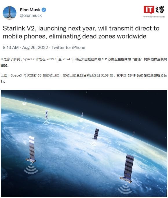 今日早間,特斯拉、SpaceX CEO 埃隆?馬斯克(Elon Musk)通過(guò) Twitter 表示,第二代星鏈將于明年推出,可與手機進(jìn)行直接傳輸,在全球范圍內消除盲區。